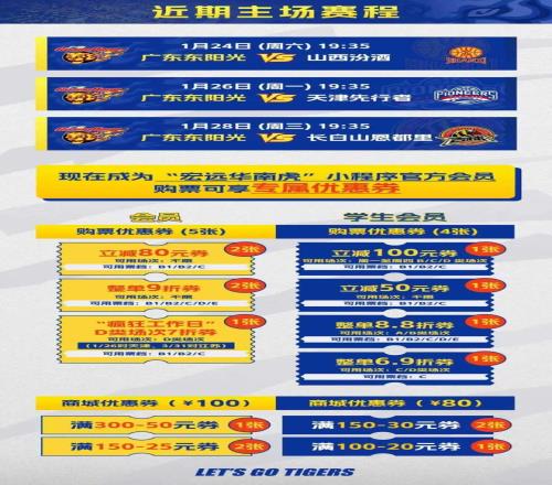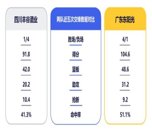 1月19日,CBA常规赛第17轮,广东东阳光将在客场与四川丰谷酒业男篮交手。上赛季两队交手4次,华南虎3胜1负。